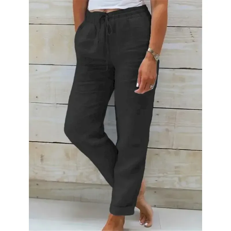 Women’s Cotton Linen Pants Chinos Pants Trousers Basic Casual Long High Waist Plain Pocket Elastic Drawstring Design High Cut Breathability Soft Micro