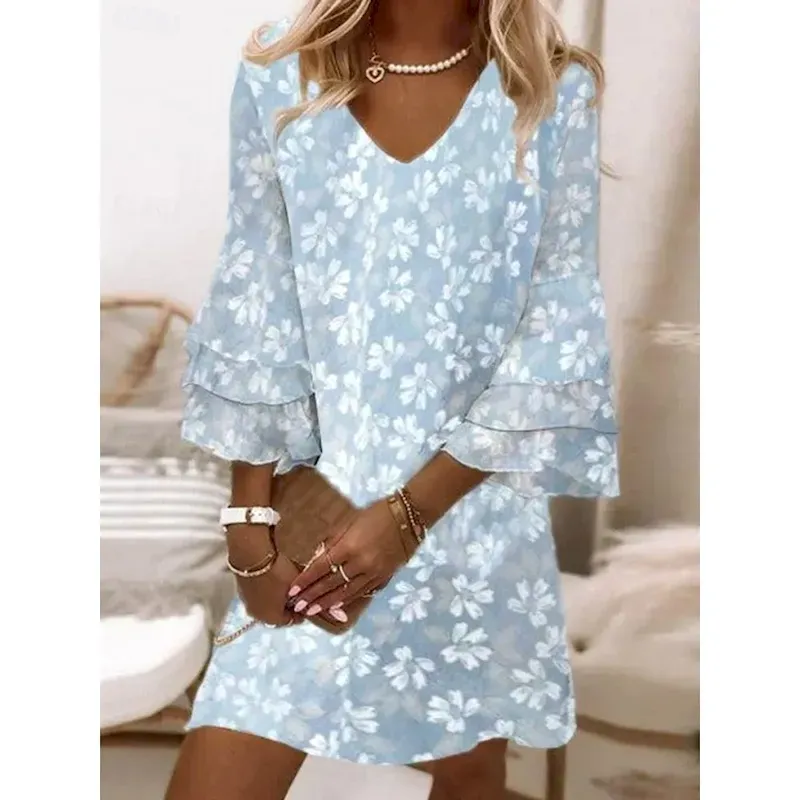 Women’s Mini Dress Sundress A Line Dress Bohemia Vacation Casual Party Regular Fit Floral Graphic Abstract 3/4 Length Sleeve V Neck Pink Purple Light