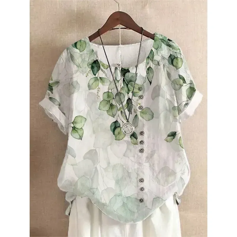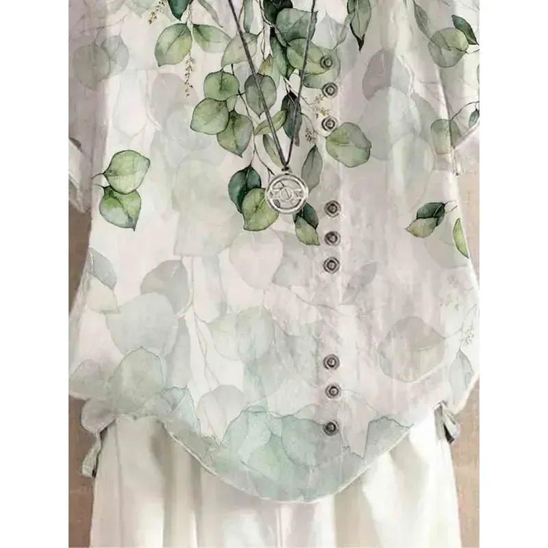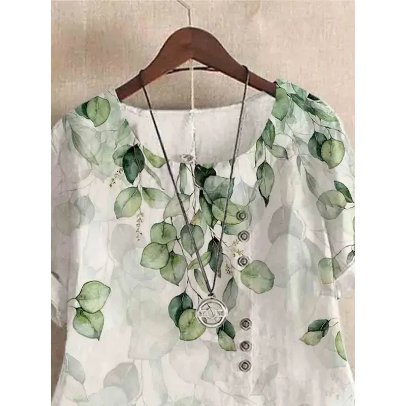Women’s Shirt Leaves Stylish Casual Sleeveless Crew Neck Regular Tops Daily Buttons Print White Light Green Blue Green Summer Spring 2025