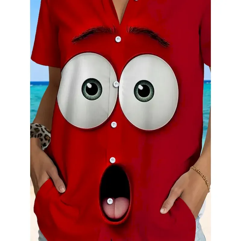 Women’s Shirt Long Sleeve Button Down Blouse Graphic 3D Vintage Tropical Daily Sleeveless Short Sleeve Shirt Collar Regular Tops Daily Pink Red Blue S