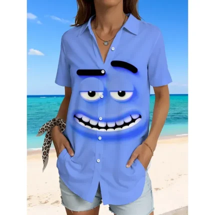 Women’s Shirt Long Sleeve Button Down Blouse Graphic 3D Vintage Tropical Daily Sleeveless Short Sleeve Shirt Collar Regular Tops Daily Pink Red Blue S