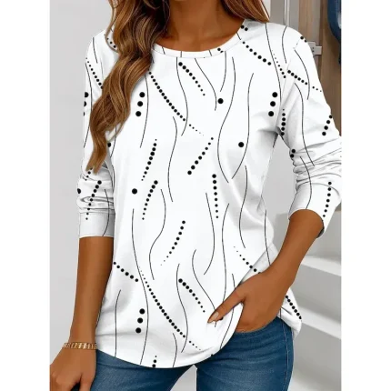 Women’s T shirt Long Sleeve Crew Neck Long Sleeve Tunic Graphic Geometric Striped Vintage Stylish Regular Tops Daily Print White Blue Purple Orange Br