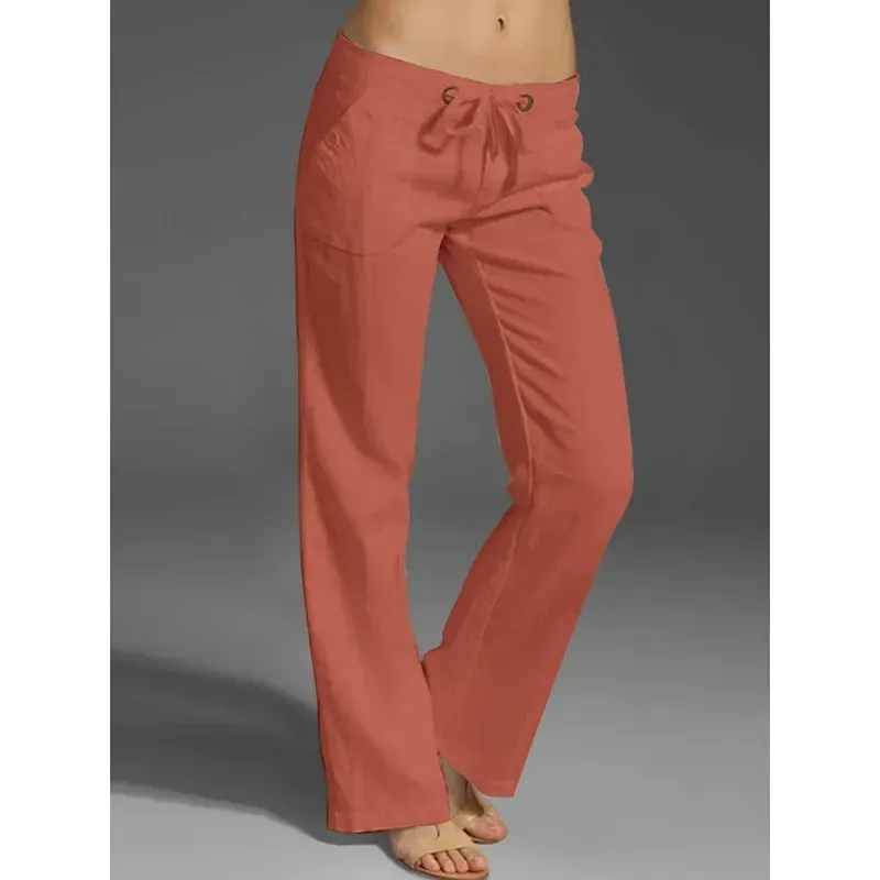 Women’s Cotton Linen Pants Chinos Classic Style Full Length High Waist Plain Pocket Elastic Waistband Comfy Soft Comfortable Micro-elastic Outdoor Str