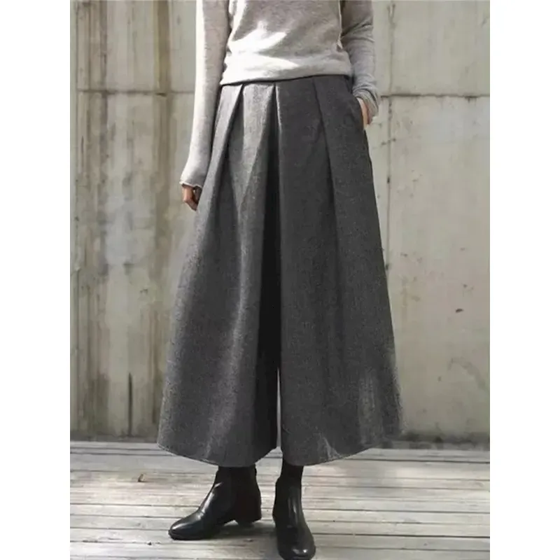 Women’s Wide Leg Cropped Pants Fashion Streetwear Ankle-Length High Waist Plain Pleated High Cut Comfort Breathability Soft Micro-elastic Vacation Str